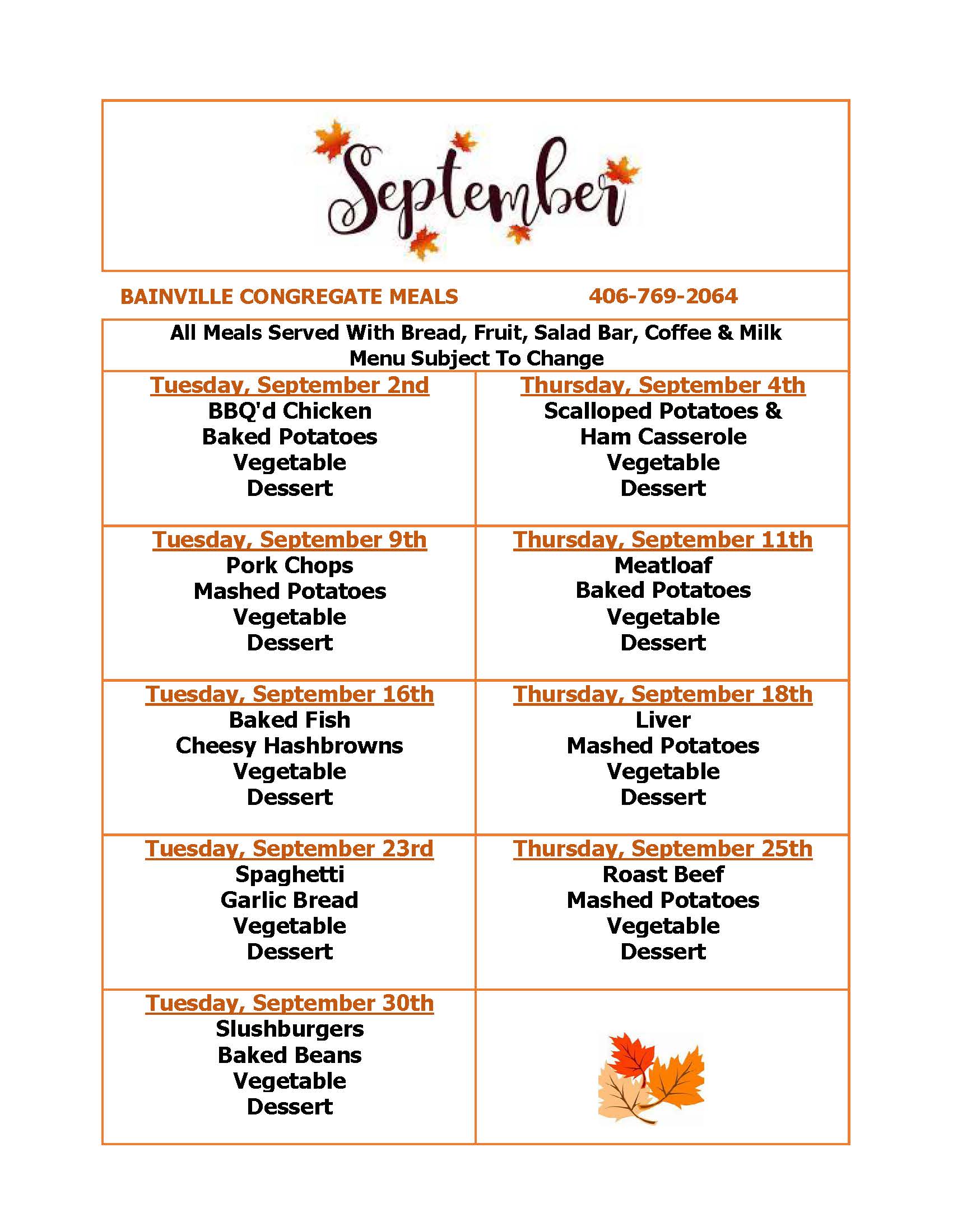 Meal Days: Tuesdays & Thursdays at 12:00pm