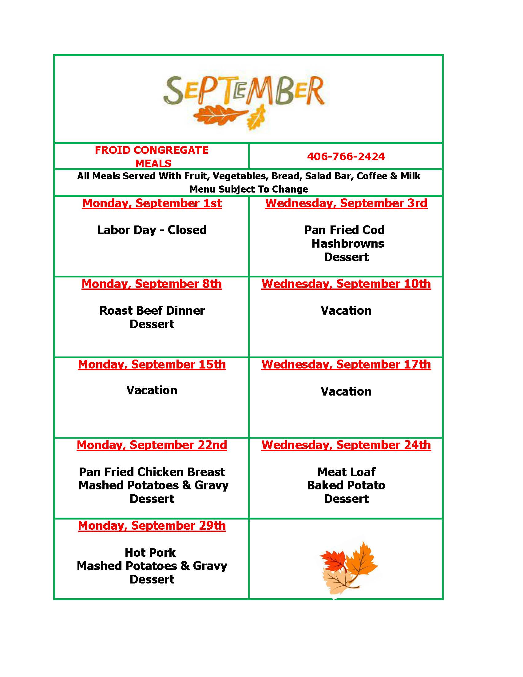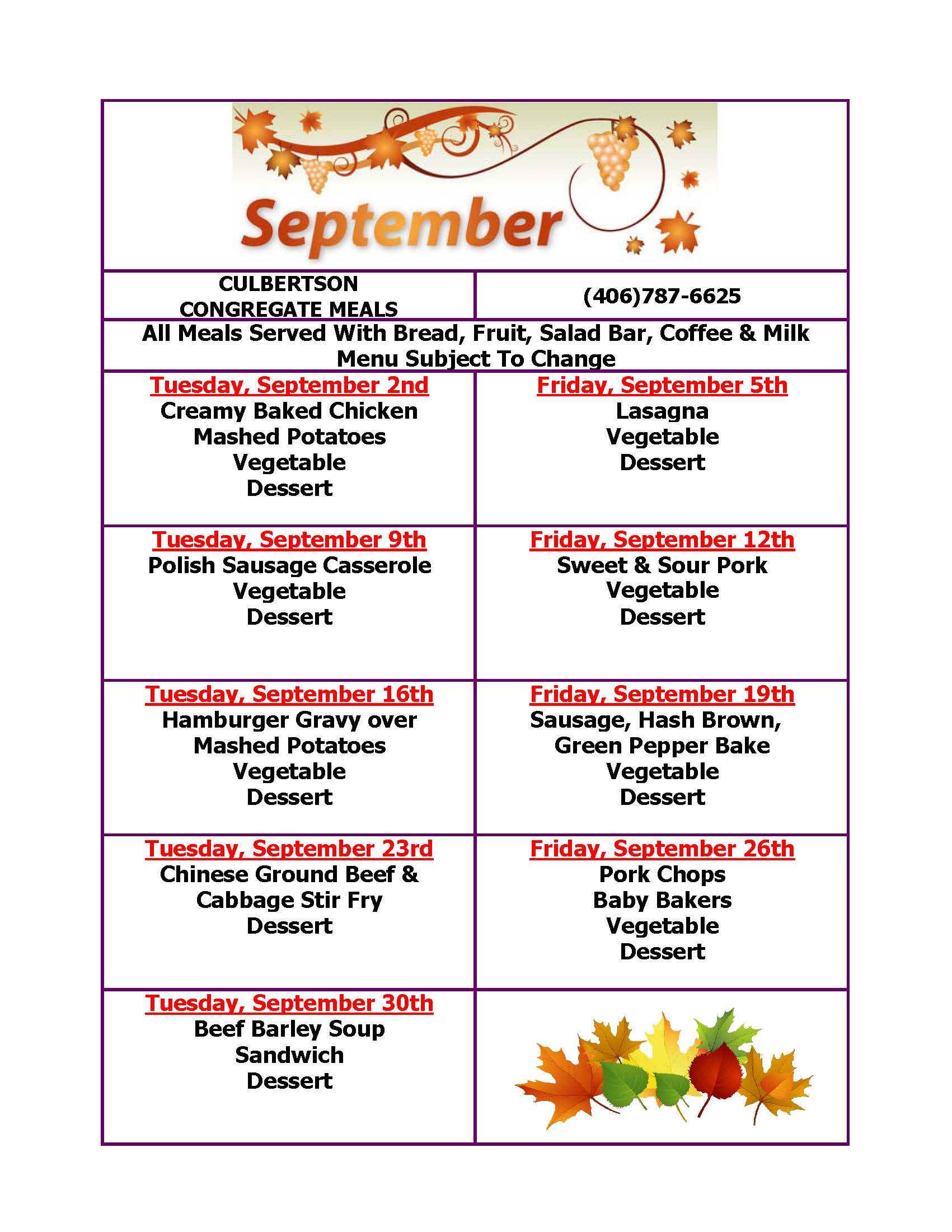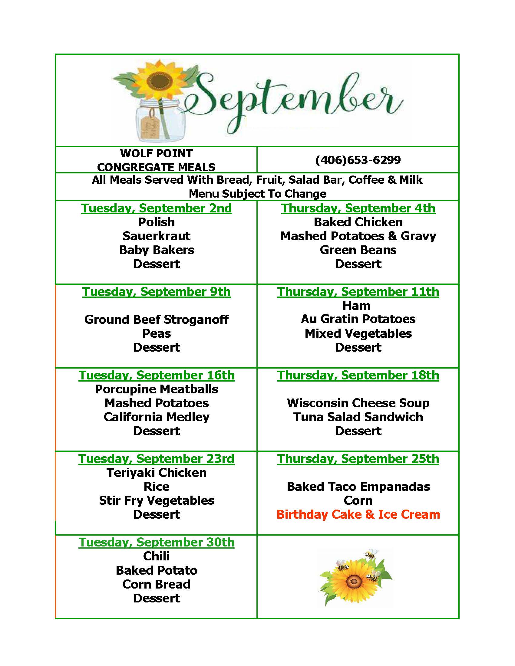 Meal Days: Tuesdays & Fridays at 12:00pm